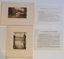 Lot de 2 Gravures, Eau forte vers 1950, vues de Pont à Mousson, 19 x 24 cm.Très bon état.
