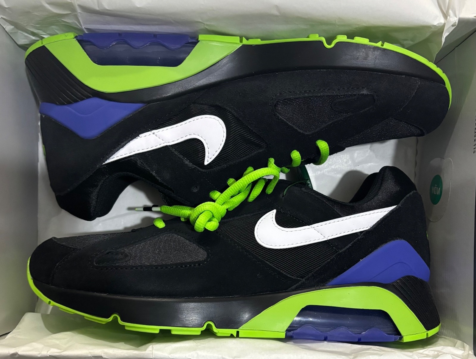 Style code: FZ3058 001. Nike Air Max 180 QS Joker. Size: US11/EU45/UK10. Color code: Black/White-Action Green.
