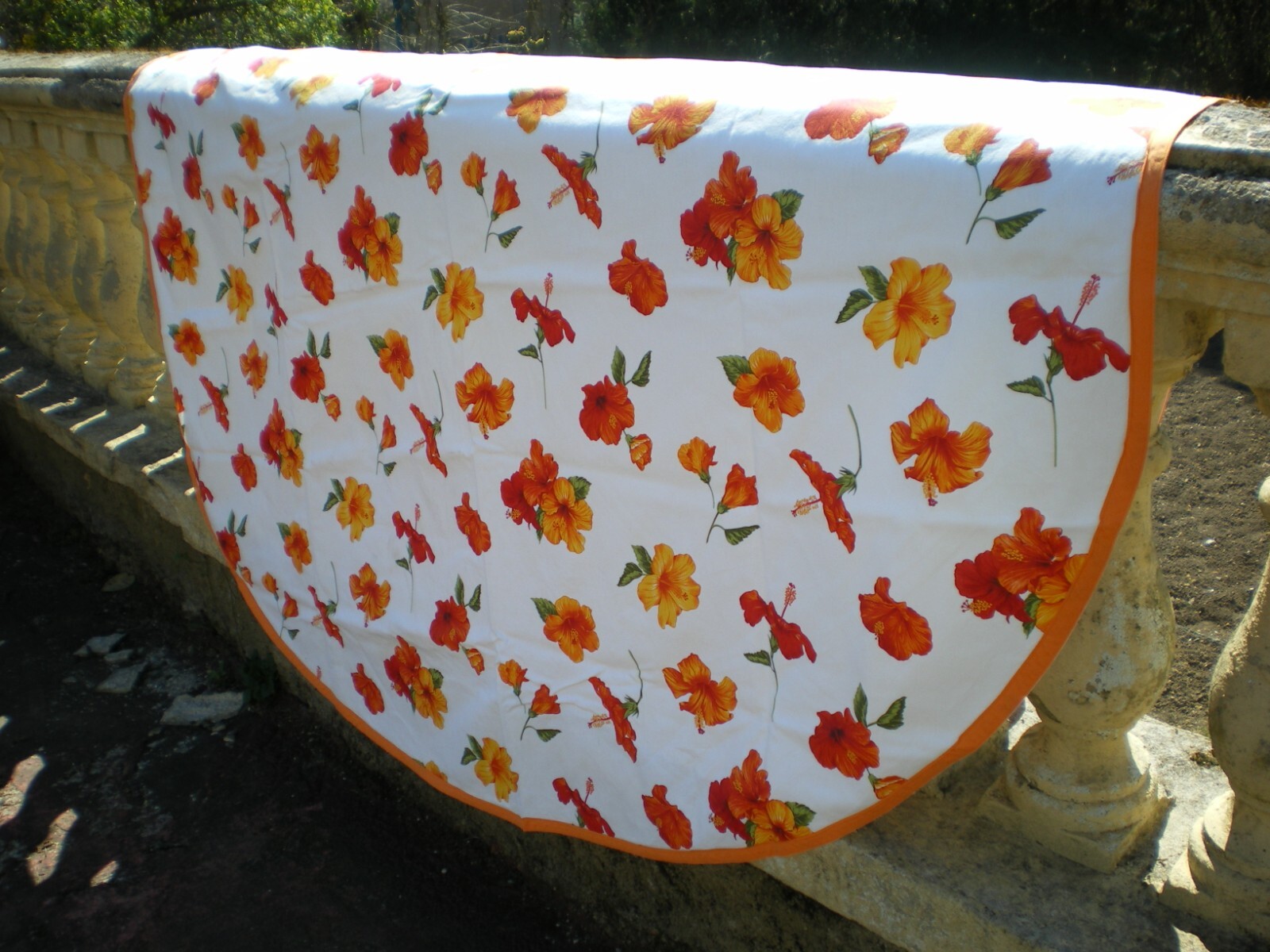 Une grande nappe a grosses fleur avec ses 4serviettes. 241cm de longueur. 140cm de large.