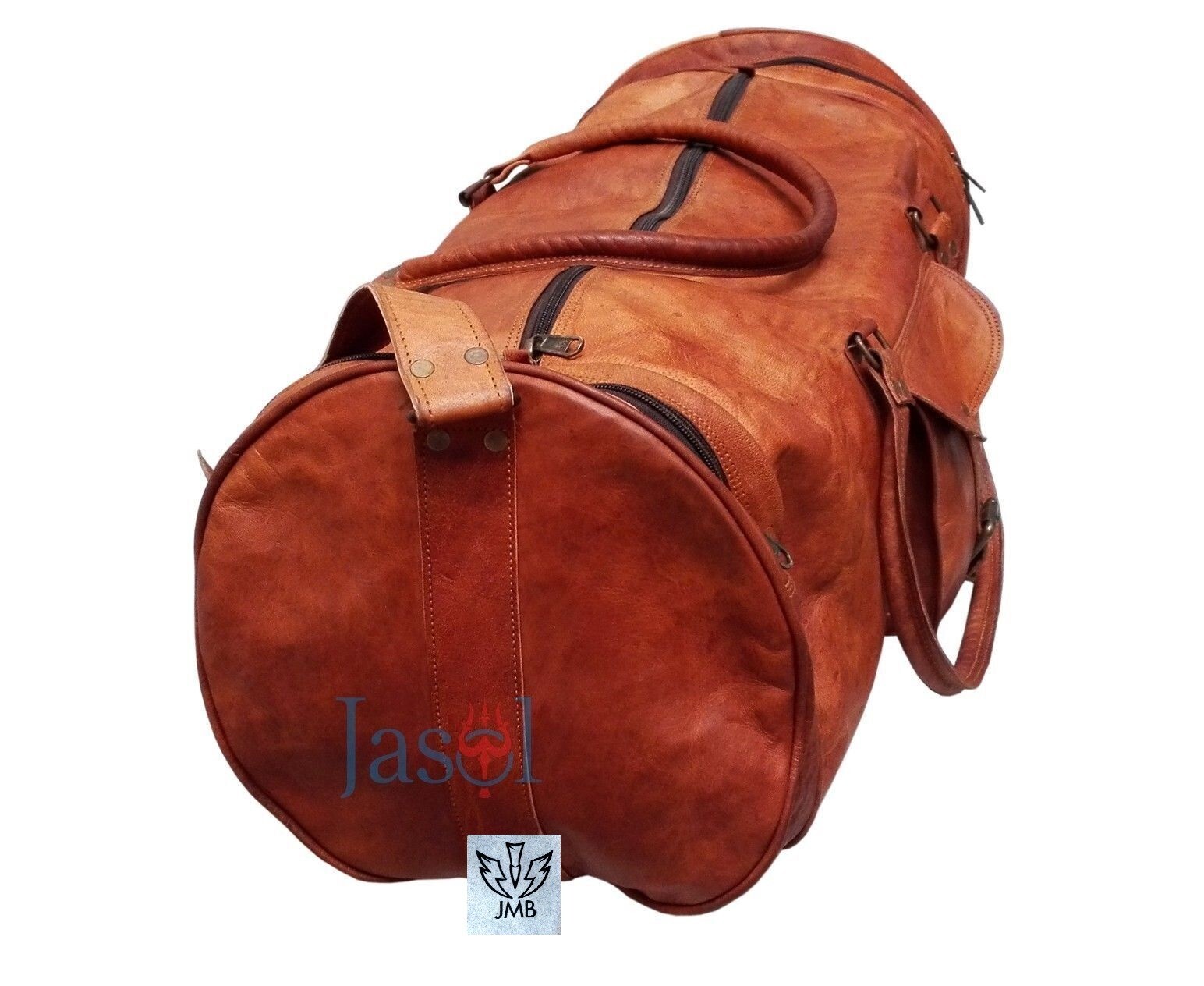 Grand sac en cuir véritable voyage vintage Duffle Gym week-end nuit en cuir v...