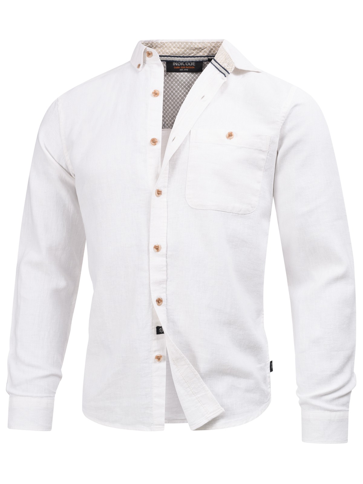Chemise Manches Longues INNiell. Le col boutonné assure un look soigné et soigné. Le matériau, composé de 55% lin et 45% coton, combine la légèreté et la respirabilité du lin avec la douceur et la durabilité du coton - parfait pour une sensation de confort.