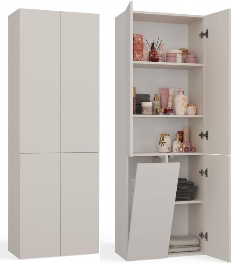 Armoire de salle de bain BDW panier à linge 4 portes meuble bas, meuble...