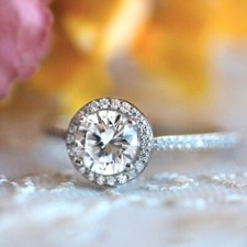 Bague de fiançailles halo en or blanc 14 carats citrine jaune créée en labora...