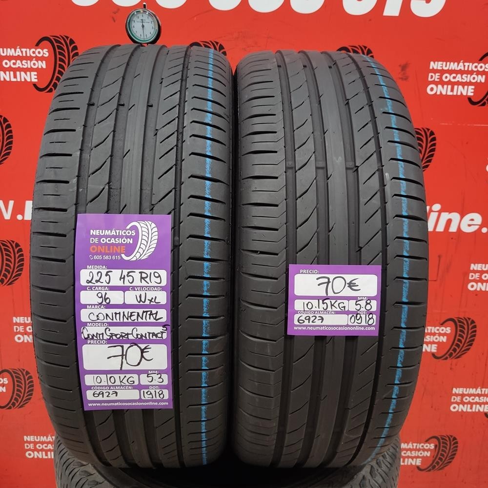 2X 225 45 R19 96W XL CONTINENTAL CONTI SPORT CONTACT 5 5.8/5.3MM REF. 6927