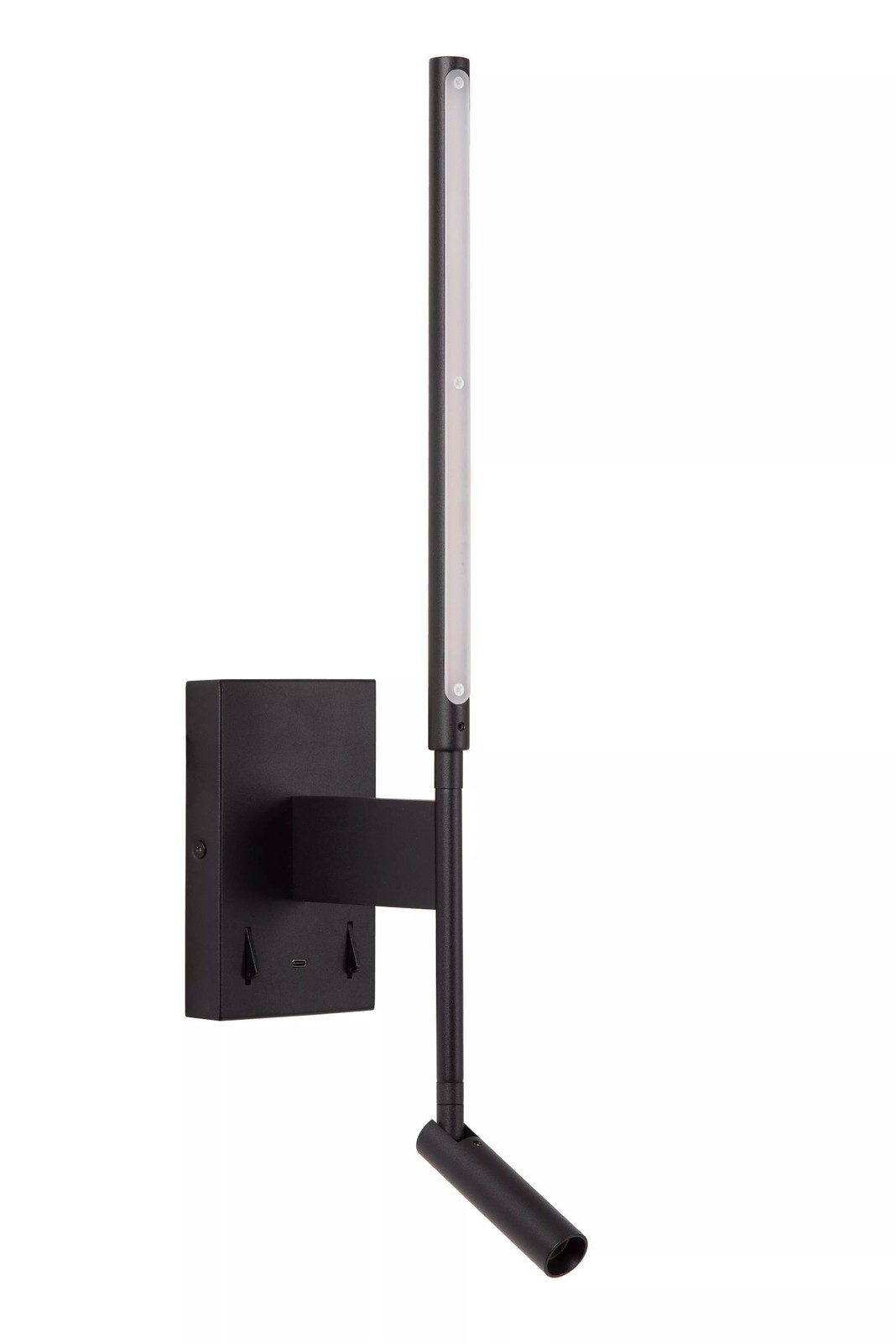 Largeur : 137 mm, Hauteur : 562 mm, Profondeur : 100 mm ; Matériau : aluminium ; 1x LED avec ampoule 6W incluse. 1x LED de 3W ; Applique murale LED intemporelle en noir ; Rotatif pour un éclairage ciblé ; Avec tête de spot flexible supplémentaire ; Avec port USB-C pour charger des appareils électroniques ; Applique parfaite pour le salon, Chambre à coucher et le couloir ; Comprend une source de lumière LED installée en permanence (blanc chaud 2 700 K).