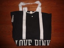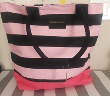 Sac cabas fourre-tout Victoria's Secret toile noire rose rayé rose NEUF