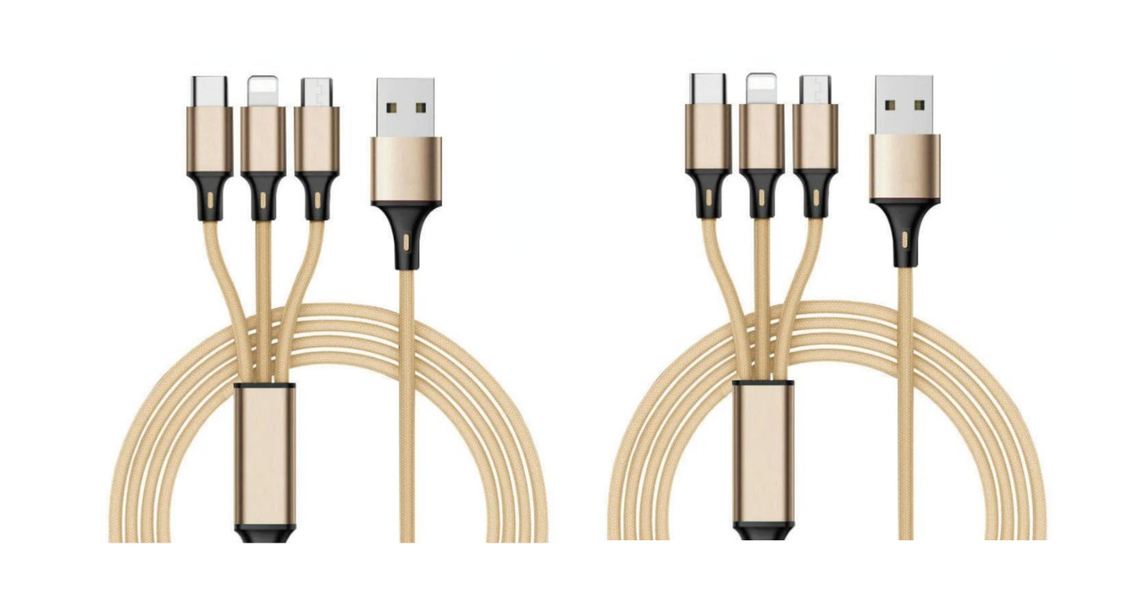 PACK x 2 Câbles Multi USB 3 en 1 Tressé et Renforcé - USB-C, Micro-USB GOLD
