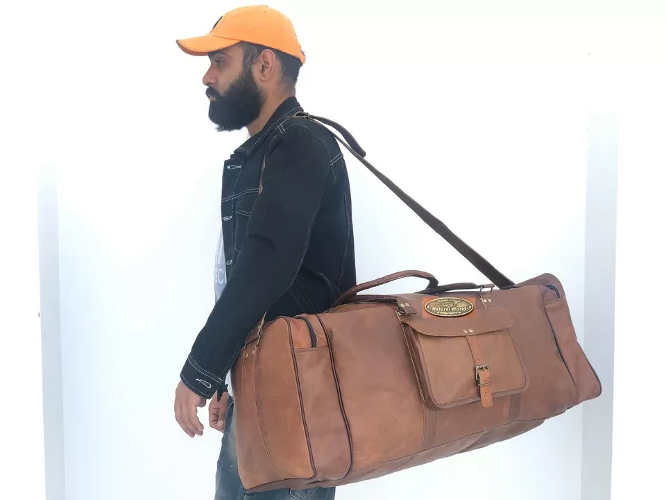 Sac fourre-tout de sport sac de voyage neuf en cuir de chèvre véritable dispo...