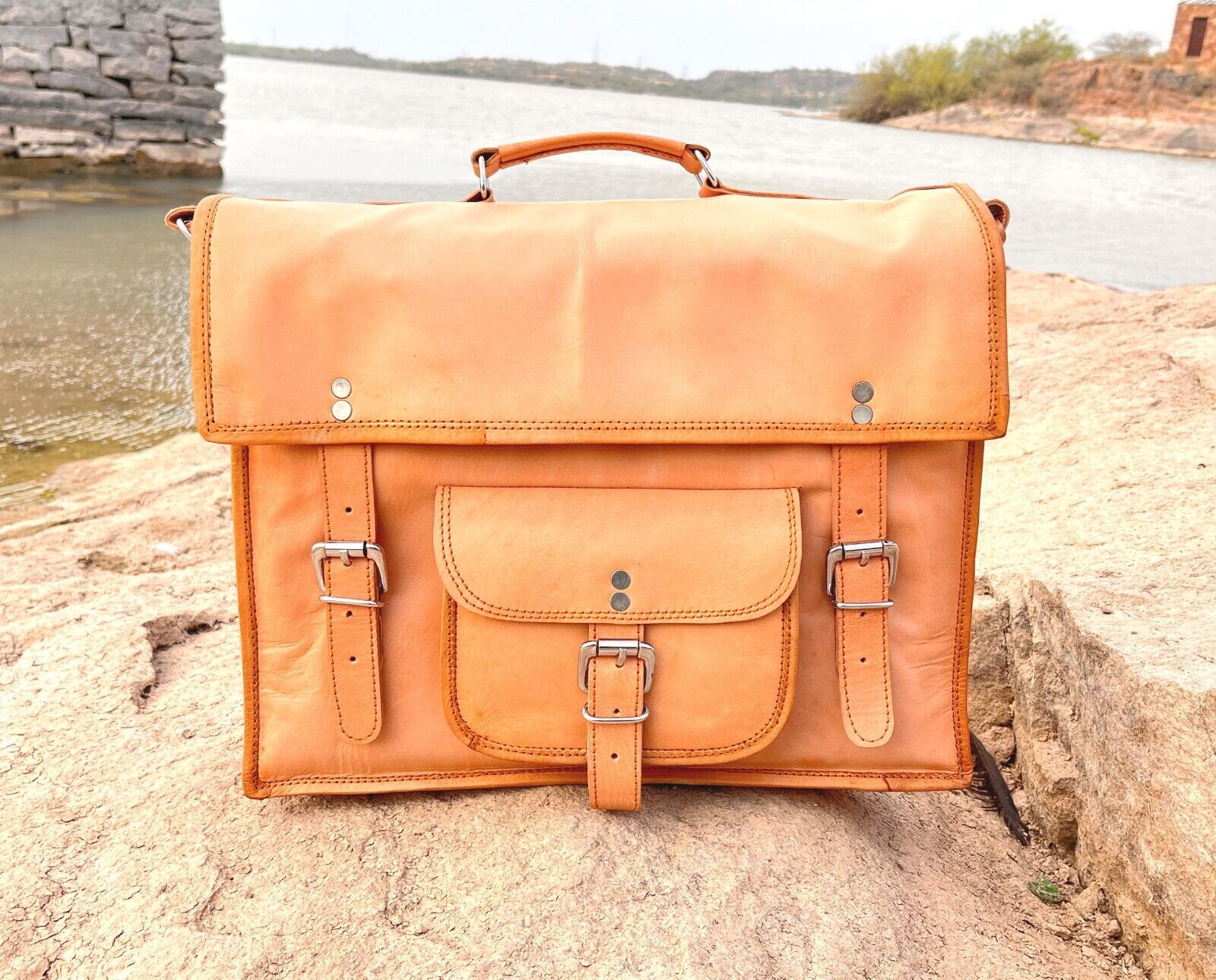 Le cuir s'adoucit et s'assombrit avec l'utilisation. Accessoires en métal en laiton véritable utilisés dans ce sac.