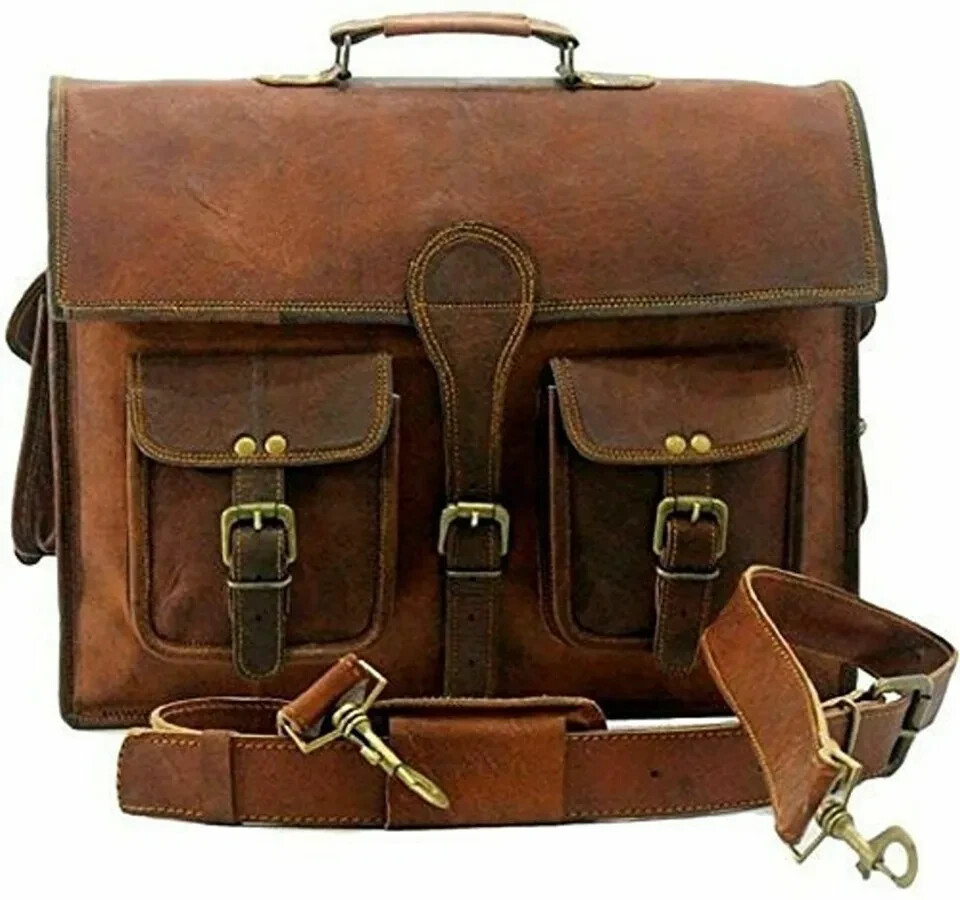 Sacoche en cuir naturel neuve pour homme chèvre, mallette pour ordinateur por...