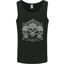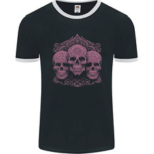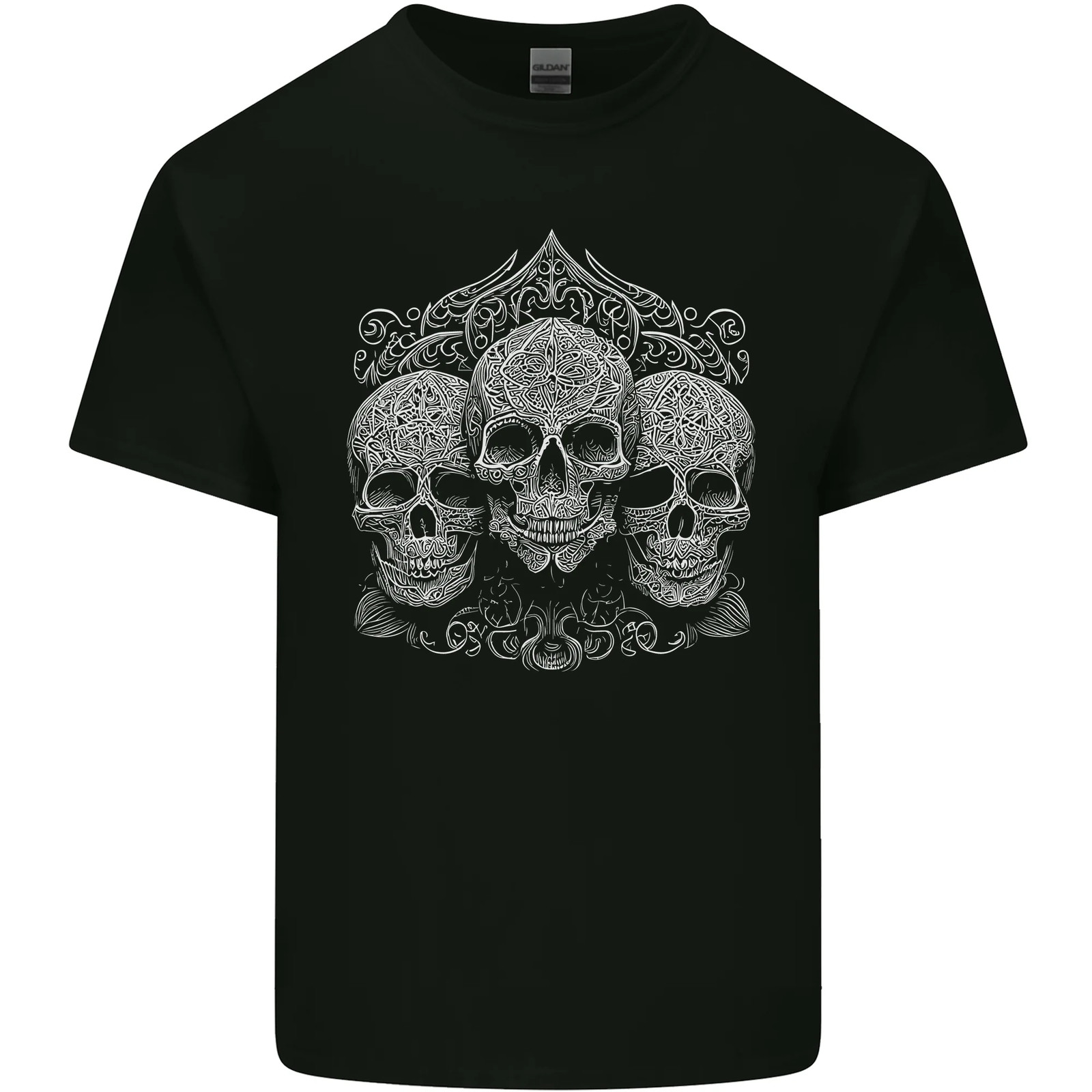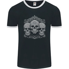3 Crânes Ornés Blancs Gothiques T-Shirt En Coton Pour Hommes