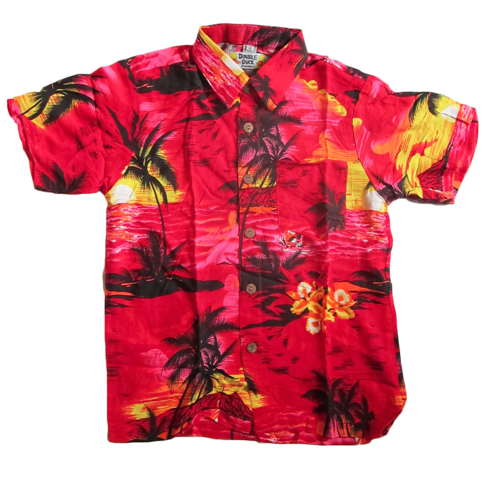 Chemise de style hawaïen pour garçons pour s'adapter à 12 ans, rouge avec des palmiers noirs et des couchers de soleil jaunes. Taille: 12, 38 "(97 cm) Chérie - 18" des aisselles aux aisselles lorsqu'ils sont placés à plat, 21 "(53 cm) de long, 16" (collier 39 cm). Il conviendra à un garçon de la mesure thoracique jusqu'à 34 ". Dimensionnement: veuillez utiliser la bande de mesure, l'indication d'âge ne work pas toujours à mesure que les enfants varient en taille. Prenez l'une des chemises existantes de votre garçon et comparez ses mesures avec la nôtre. Si la chemise est posée à plat, la mesure en pouces des aisselles aux aisselles x 2 vous donne la taille de la poitrine de la chemise (exemple - si votre chemise mesure 19 "des aisselles aux aisselles, c'est une chemise de poitrine de 38").