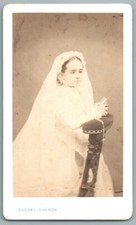 CDV 1870's Petite Fille au gilet de velours à franges Photo J. Blanc Mode Enfant