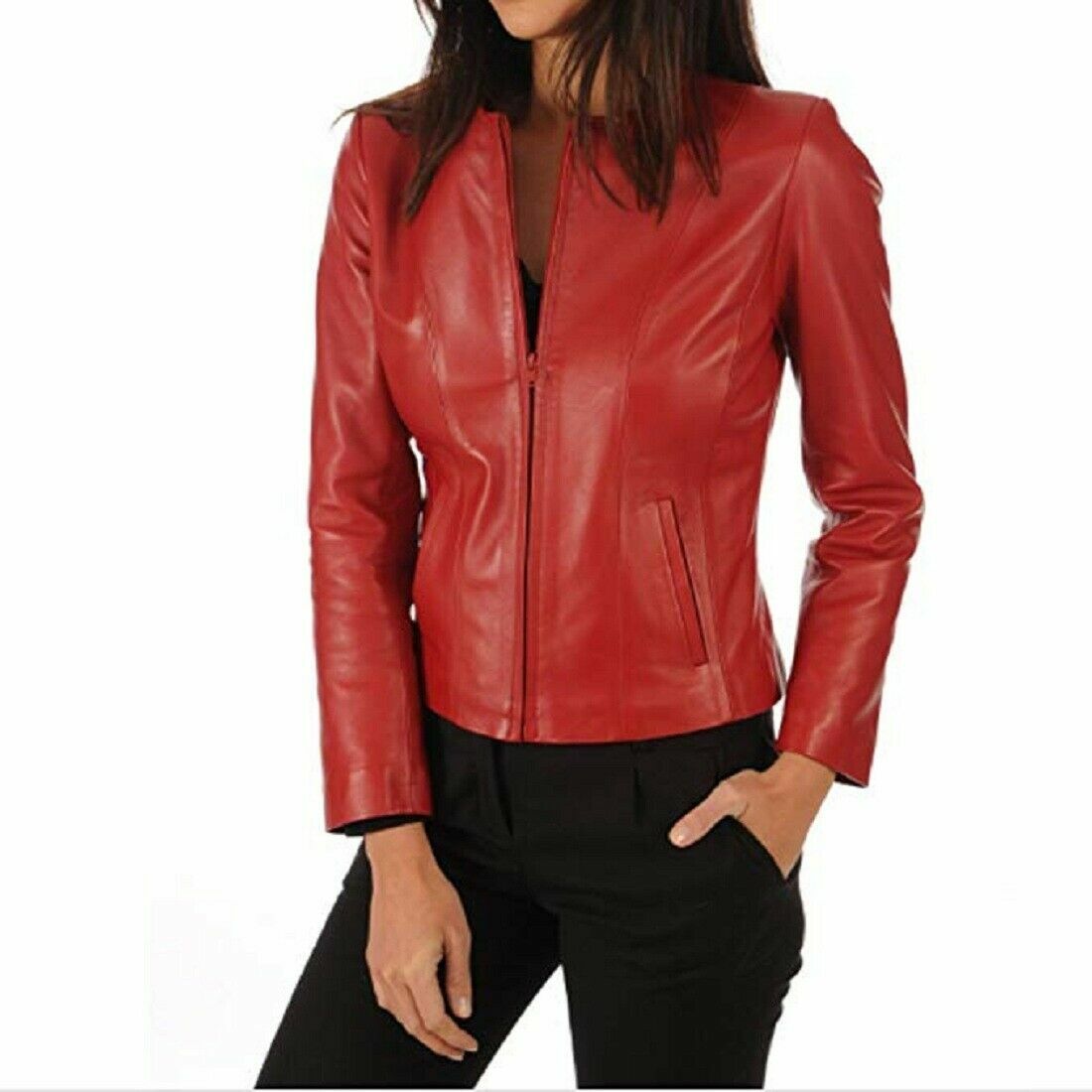 V Veste en cuir souple et lisse. v La veste en cuir d’agneau véritable. Cependant, de légères variations de couleur peuvent survenir en raison de résolutions d'écran variables. Ne le manquez pas !