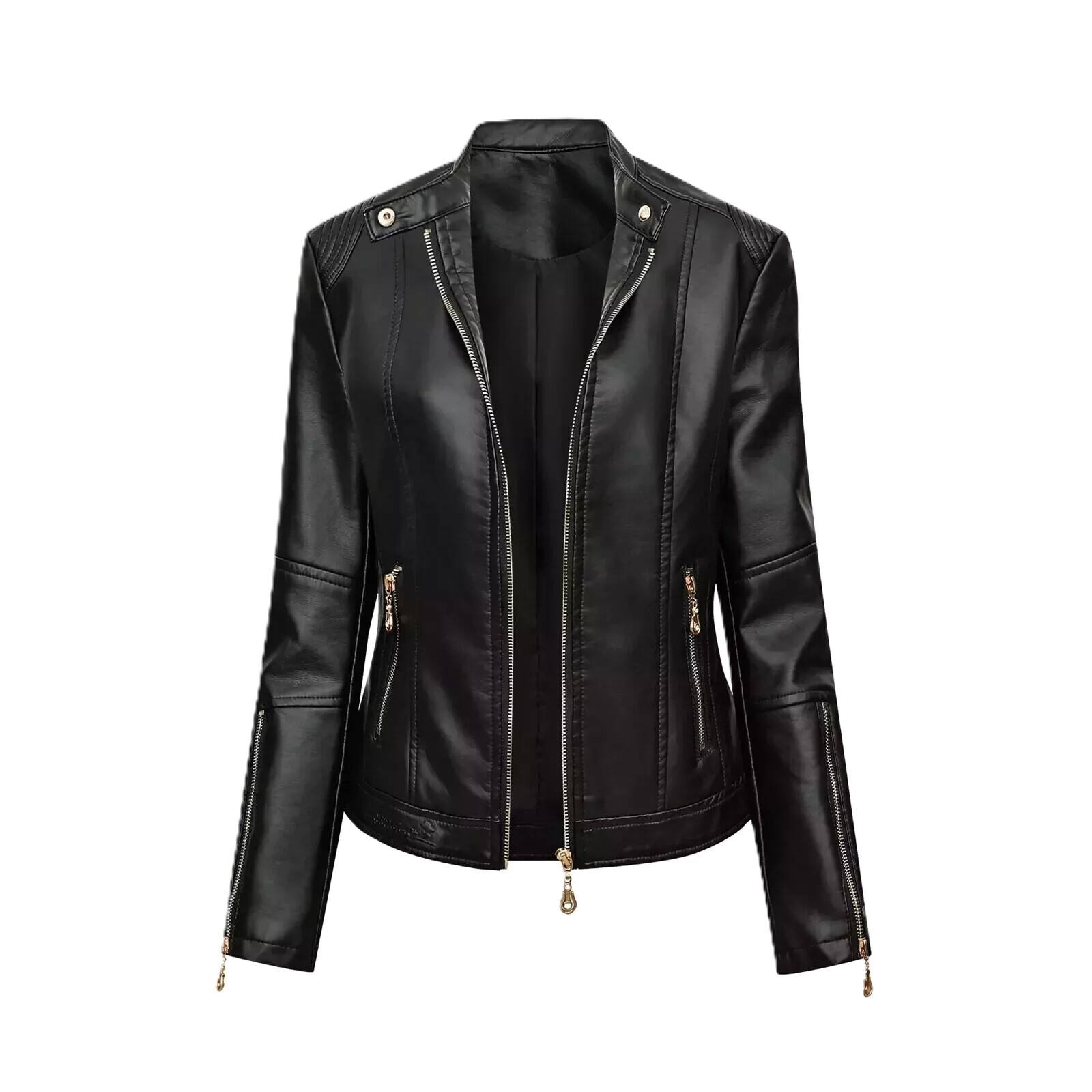 Blouson moto motard femme noir fait main 100 % cuir d'agneau véritable