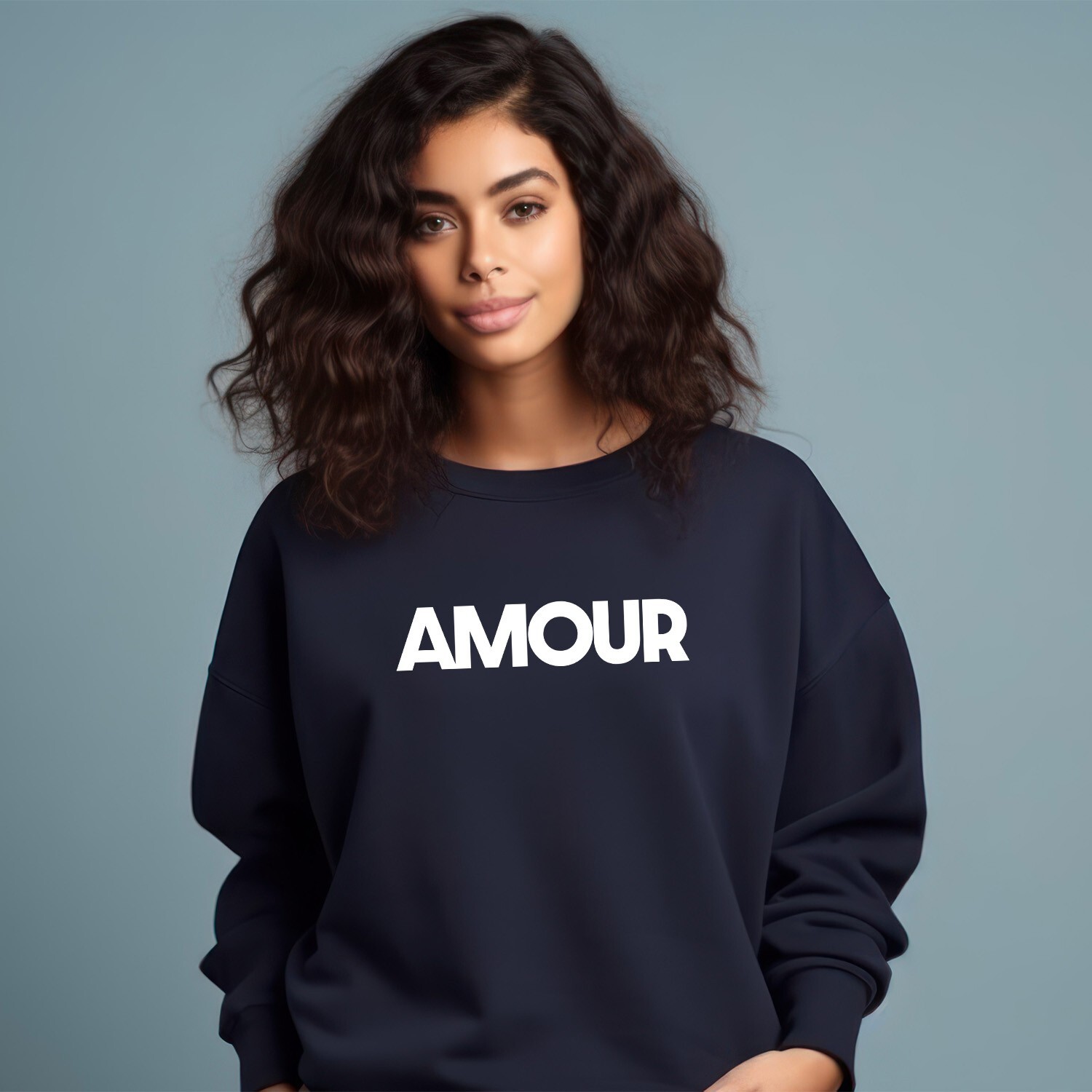 Sweatshirt femme personnalisé imprimé en France. Couleur bleu marine.