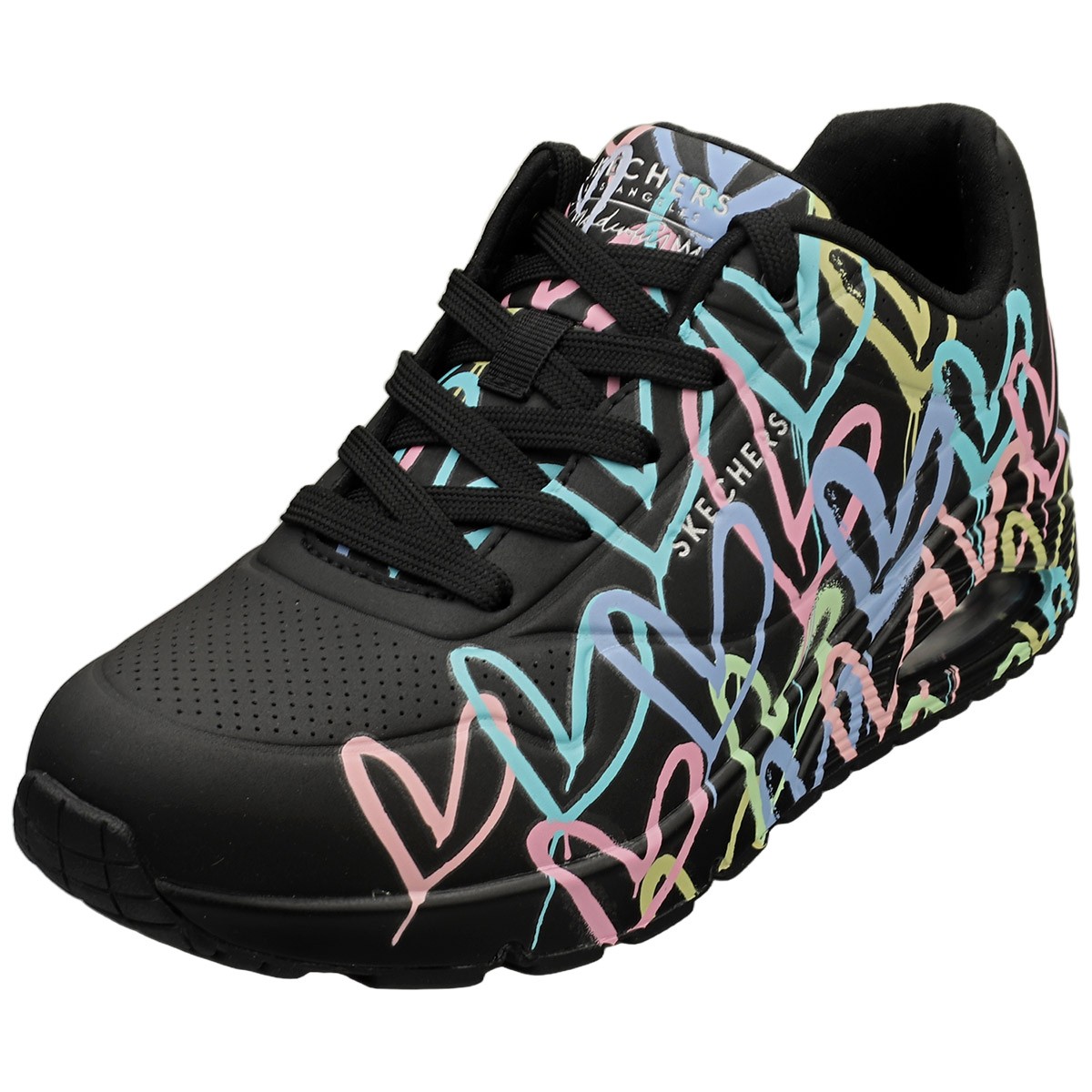Skechers Los Angeles Uno, une élégance décontractée qui vous accompagne partout. Ces baskets féminines, confectionnées en matières synthétiques robustes, révèlent une palette de nuances profondes, rehaussées de touches vives et joyeuses qui dynamisent l'ensemble. L'intérieur textile assure un confort optimal tandis que la semelle intérieure, également textile, offre un amorti délicat. La semelle extérieure en caoutchouc apporte adhérence et durabilité, tandis que les lacets permettent un ajustement parfait. Une chaussure pensée pour le mouvement, l'audace et un style indémodable. Référence 155507-BPTQ.