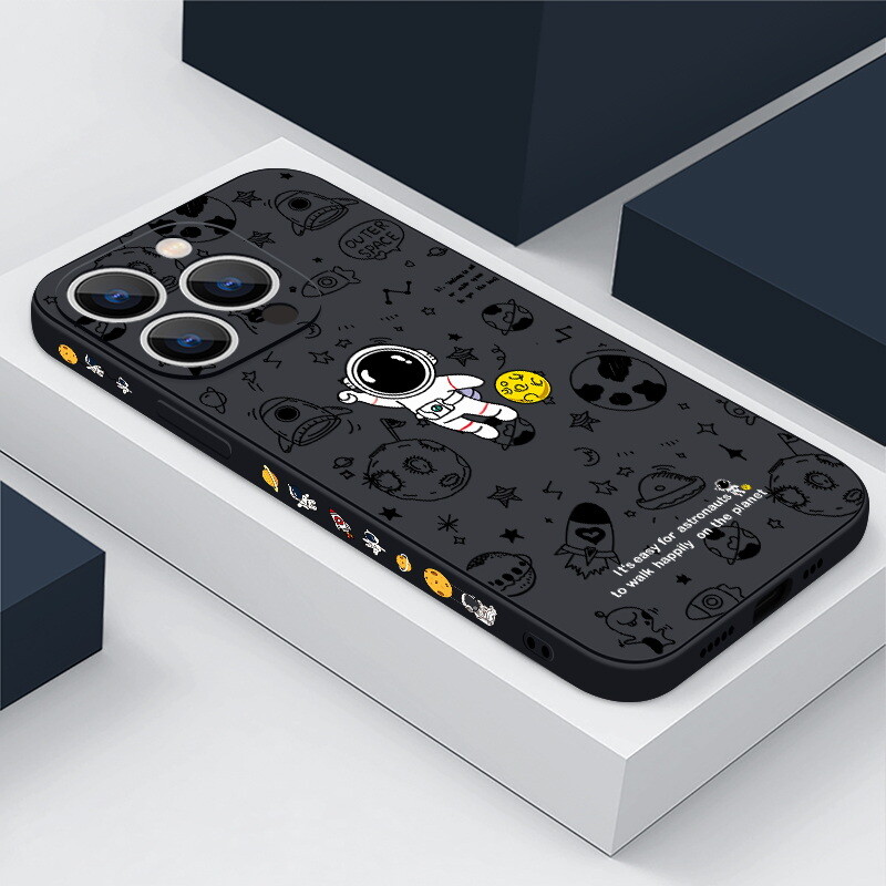 Pour iPhone 15 Pro Max 14 13 12 11 Étui Coque Souple TPU Antichoc Astronaut Noir