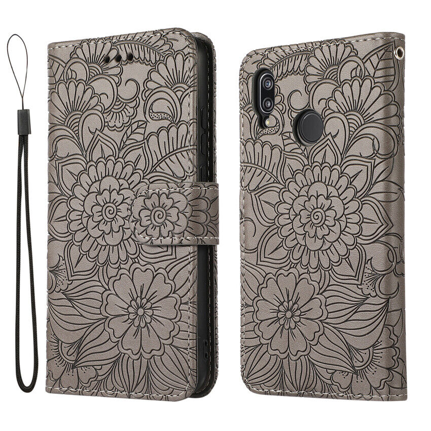 Étui portefeuille à fleurs avec support en cuir pour cartes, pour Huawei...
