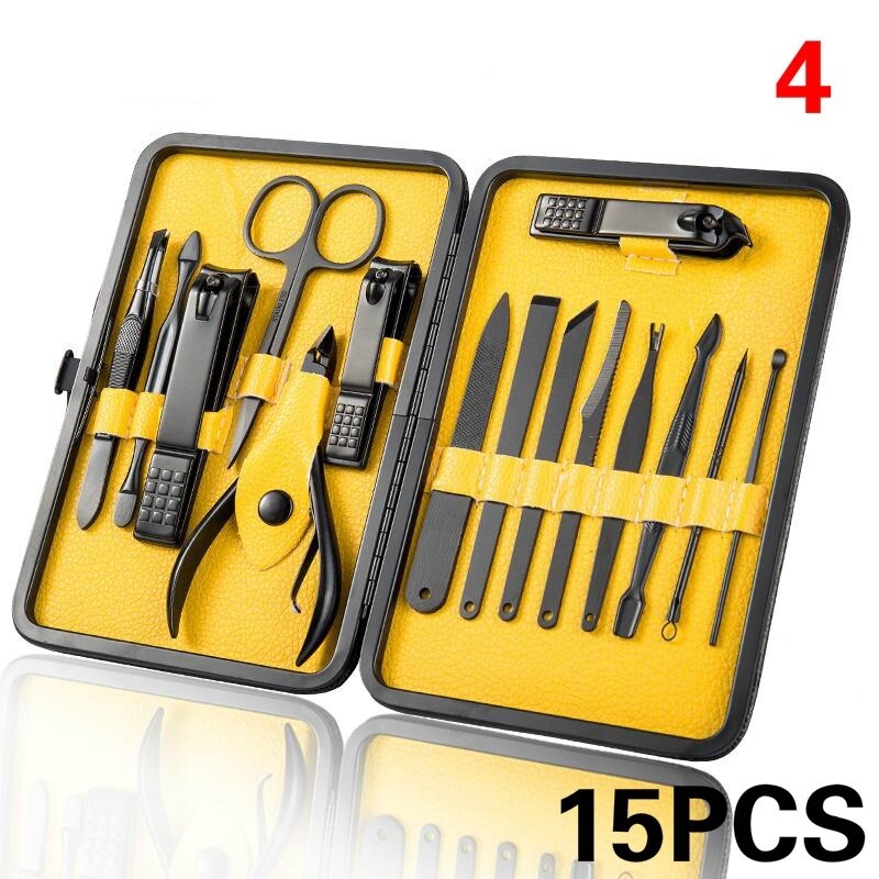 8-18pcs Manucure Nail Care Clipper Set Outil de Pédicure Acier Inoxydable Noir Note 1. En raison de la différence de réglage de la lumière et de l'écran, la couleur des éléments peut être légèrement différente de celle des images. 2. Veuillez permettre un écart de 1 à 3 mm en raison de différentes méthodes de mesure.