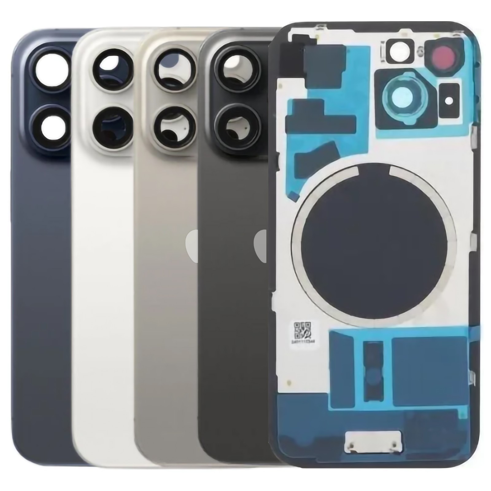 Vitre arrière collée sur plaque métal avec aimant circulaire Mag Safe et lentilles photo.