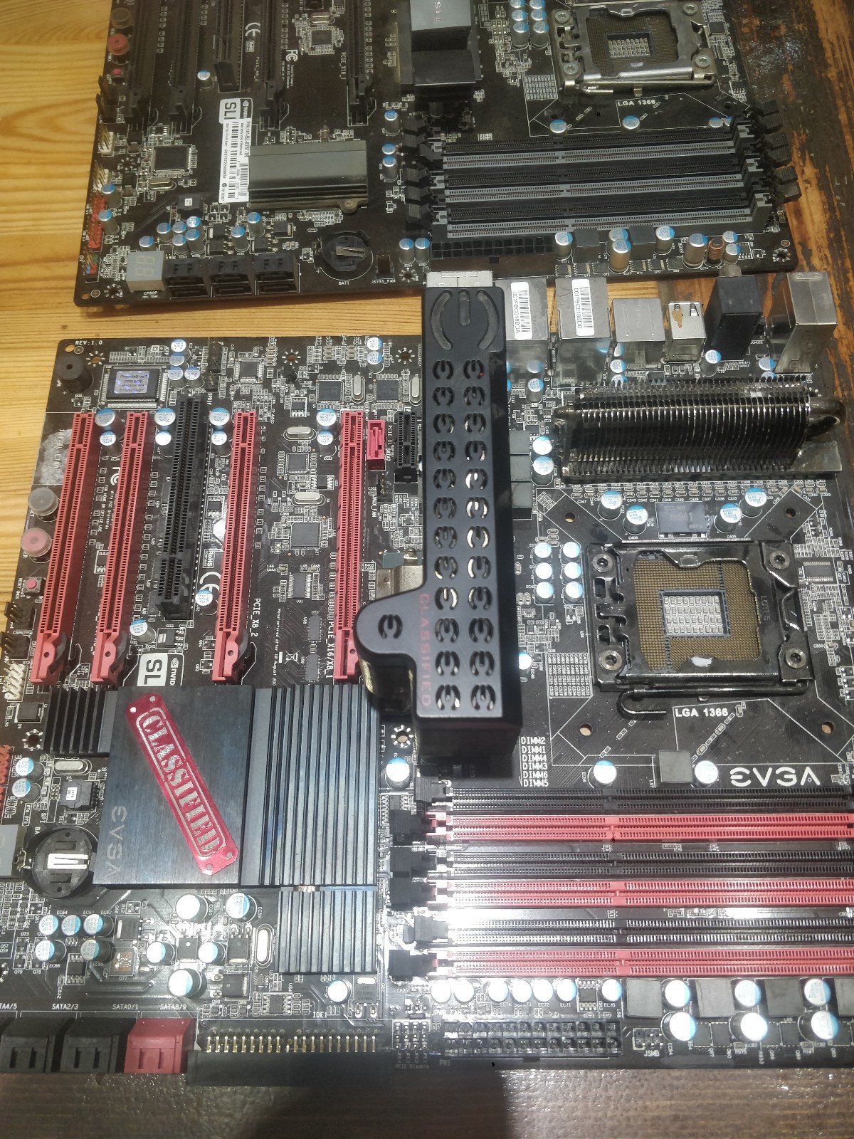2 cartes mères EVGA x58 1366. les deux cartes s'allument mais je sais pas si elles marchent. Il y a un processeur sur chaque carte i7920.