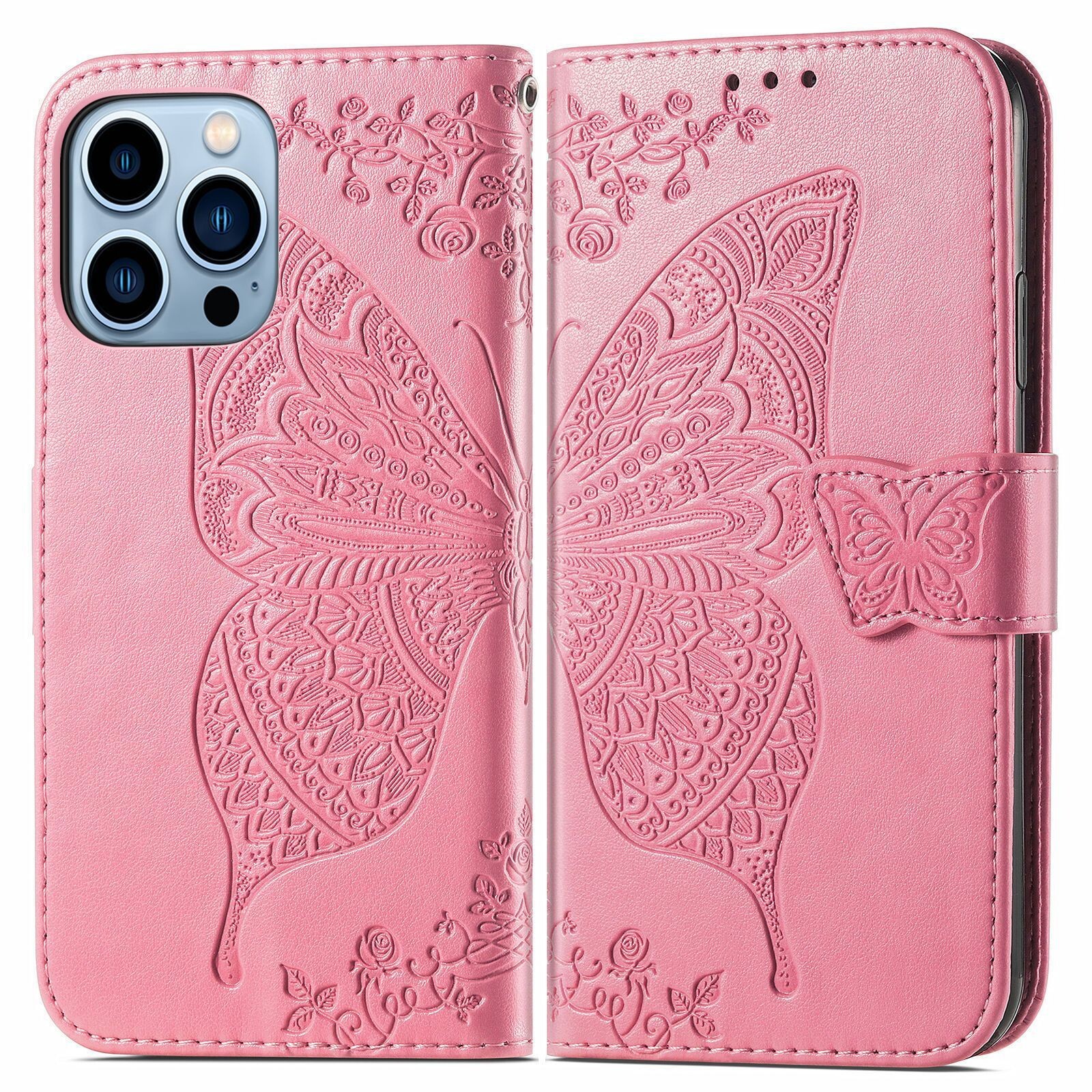 Étui de housse de livre Ecopelle pour iPhone tous modèles sculpture papillon