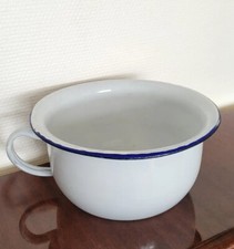 Ancien pot de chambre émaillé seau hygiénique bleu déco vintage poubelle