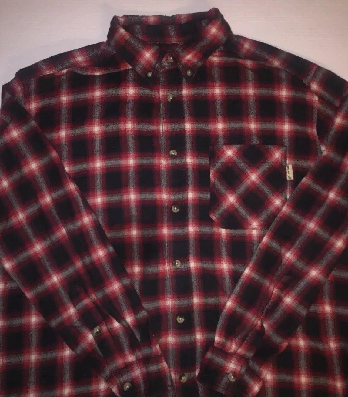 Woolrich Shirt Men's XL Campfire Black Red Plaid Flannel Button Front VTG EUC