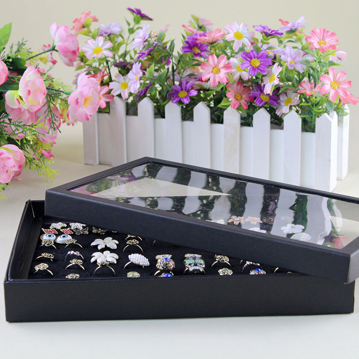 Boîte à Bijoux Transparente Velours 100 Fentes Étui Plateau Bijoux Organiseur