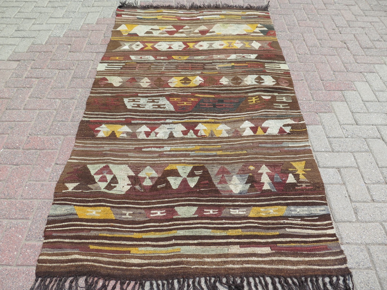 Ancien kilim turc, tapis de sol tissé à la main, tapis en laine, couleur marr...