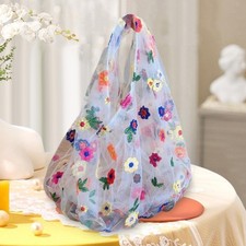 Matériau fiable : Le sac à main brodé de fleurs est léger et fabriqué en gaze douce Sa broderie délicate lui confère une touche d'élégance, le rendant à la fois charmant et pratique au quotidien. 1x Sac à main brodé.