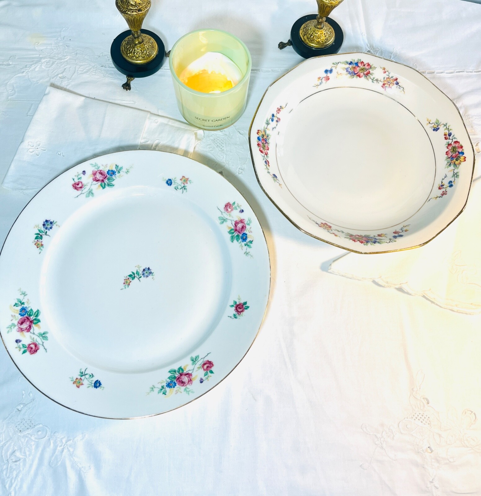 Les assiettes comportes toutes les deux des imperfections. Duo d’assiette, une creuse et une plate. Les deux comporte des motifs floraux avec estampillage Limoges.