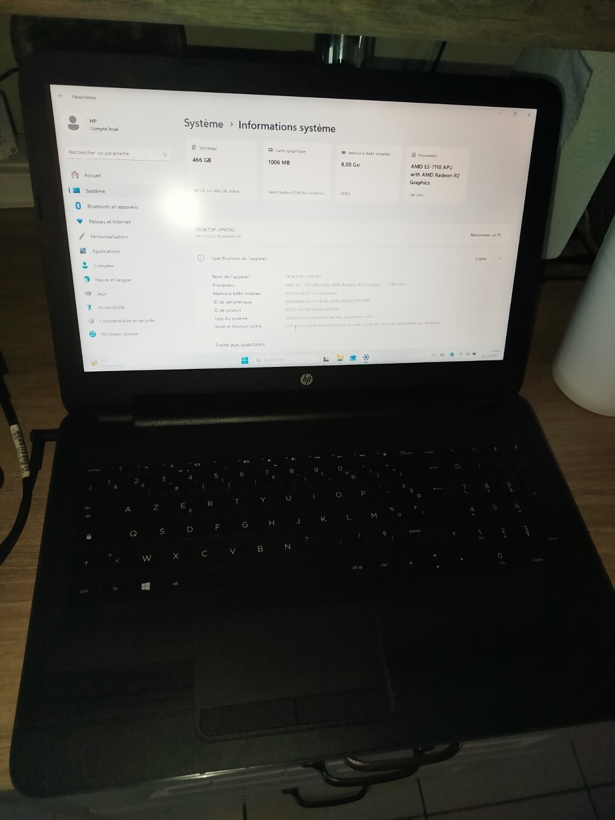 HP 255 g5 Windows 11 disque dur HDD 500 go 8 go ram
