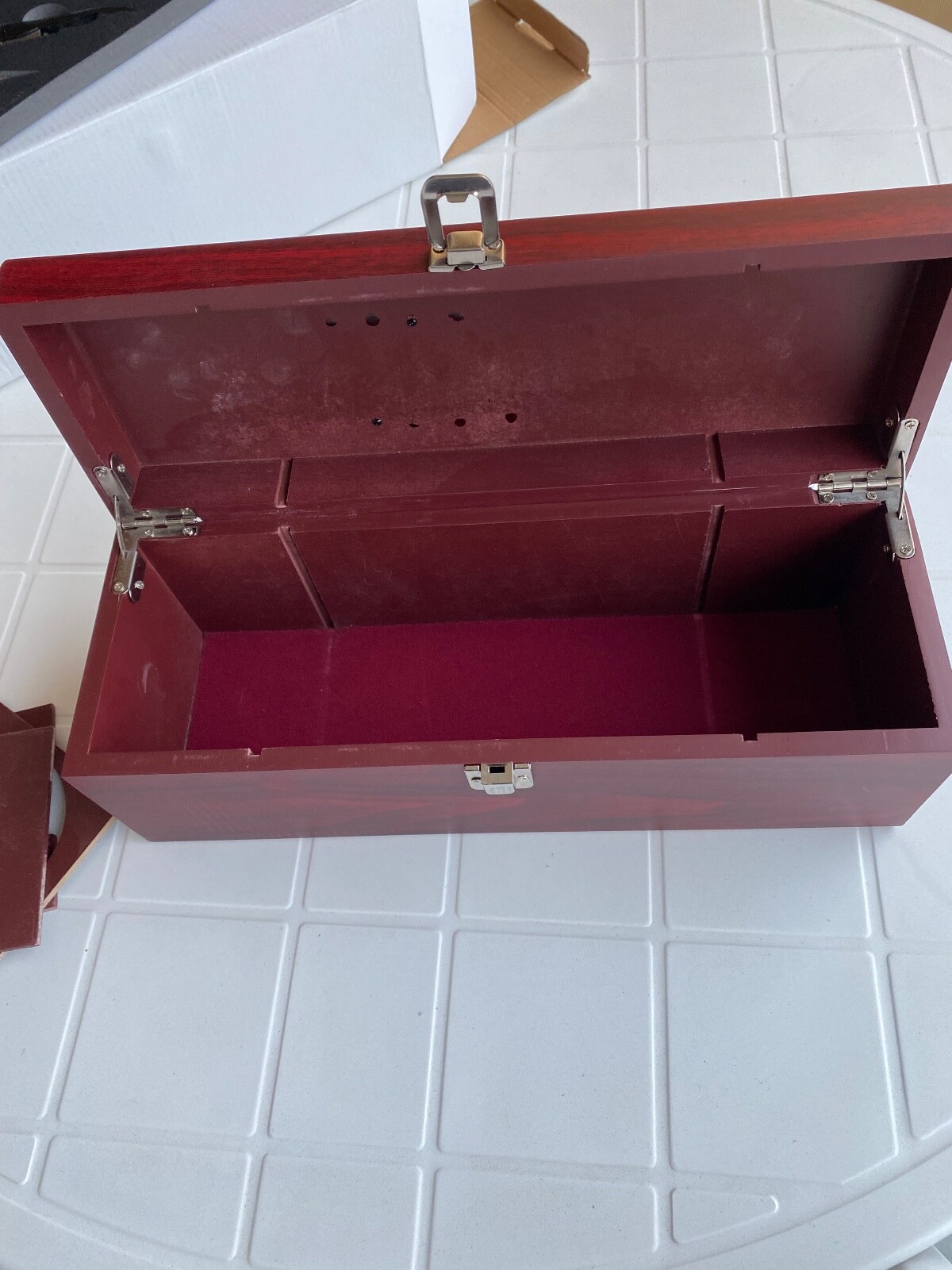 Coffret Boite de luxe et élégant en bois coloris bordeaux pour rangement NEUF