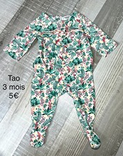 PYJAMA FILLE 3 MOIS EN VELOURS A VOLANTS BLEUS MOTIFS CERISES TRES BON ETAT