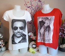 LIFE IS A JOKE T-shirt Dames Haut T EU 38 blanc-gris clair style décontracté