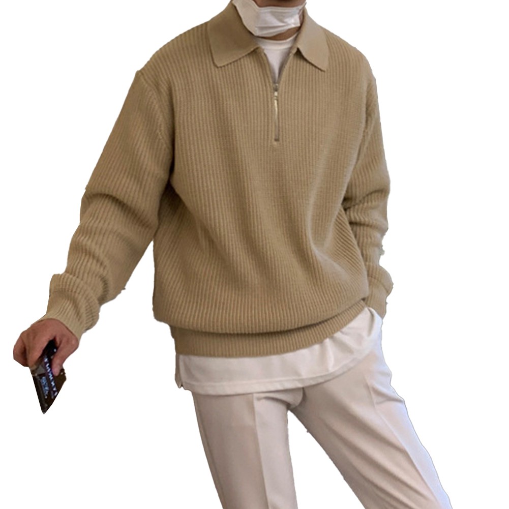 Sweat tricoté chaud hiver homme design élégant avec revers et détail zip