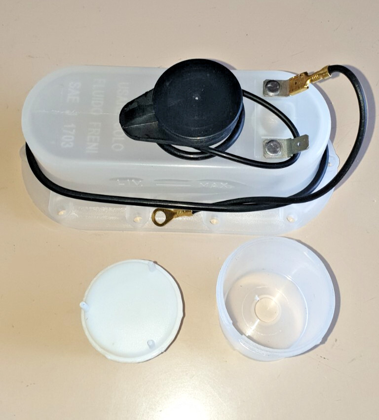 Réservoir de pompe à huile de frein Lancia Fulvia Coupè. Plateau haut avec capteurs, complet de joint, bouchon et flotteur Complet avec jeu de boulons Se monte normalement sur maître cylindre de frein 21 L'état "Nouveau". APRÈS L'ACHAT DE L'ARTICLE, VEUILLEZ LAISSER VOTRE CODE FISCAL OU VOTRE NUMÉRO DE TVA POUR ÉMETTRE LA FACTURE.