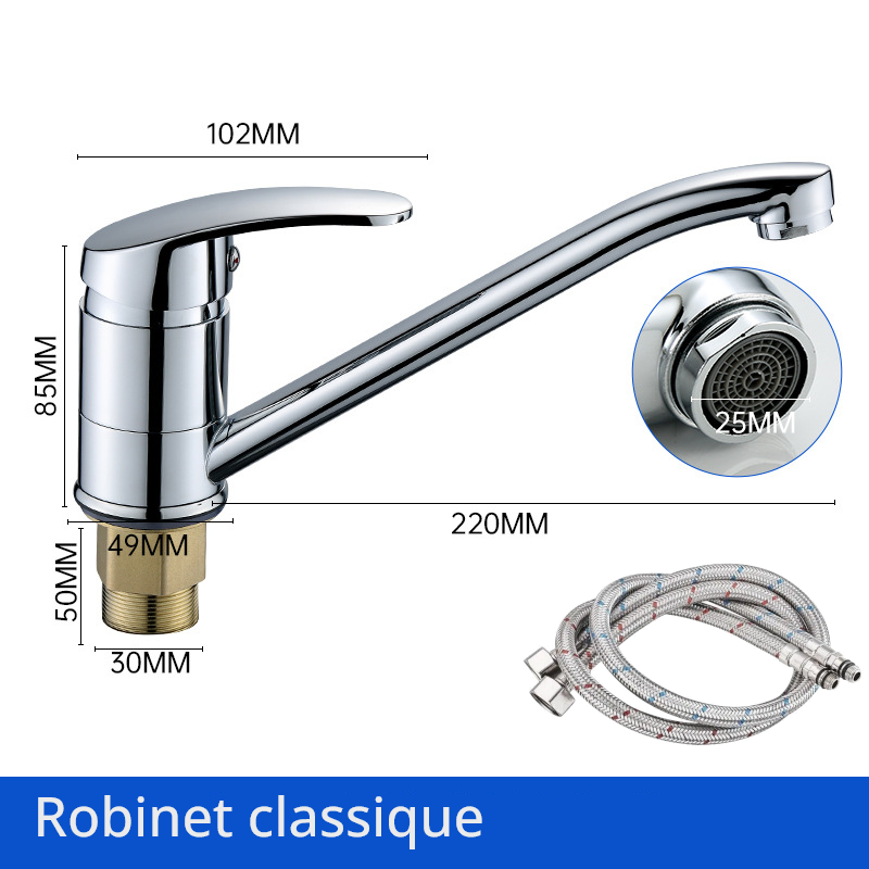 Robinet mitigeur classique et intemporel, sortie d'eau longue et plate, standard, alliage d'aluminium et cuivre, pour la cuisine et les éviers. Style classique et intemporel. - 2x tuyau d'eau. Accessoires inclus .