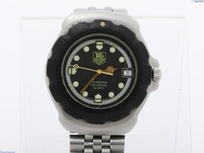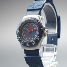 La montre vintage Tag Heuer Formula 1 383.513/1 des années 1990 dispose d'une lunette noire, d'un cadran rouge et noir et d'une résistance à l'eau de 200 m. Cette montre de fabrication suisse a un mouvement à quartz et un indicateur de date. Avec une taille de boîtier de 36 mm et une largeur de patte de 18 mm, cette montre est livrée avec sa boîte et son emballage d'origine. Idéal pour le sport et le luxe, ce garde-temps dégage un style classique et formel, ce qui en fait un accessoire polyvalent pour toutes les occasions.