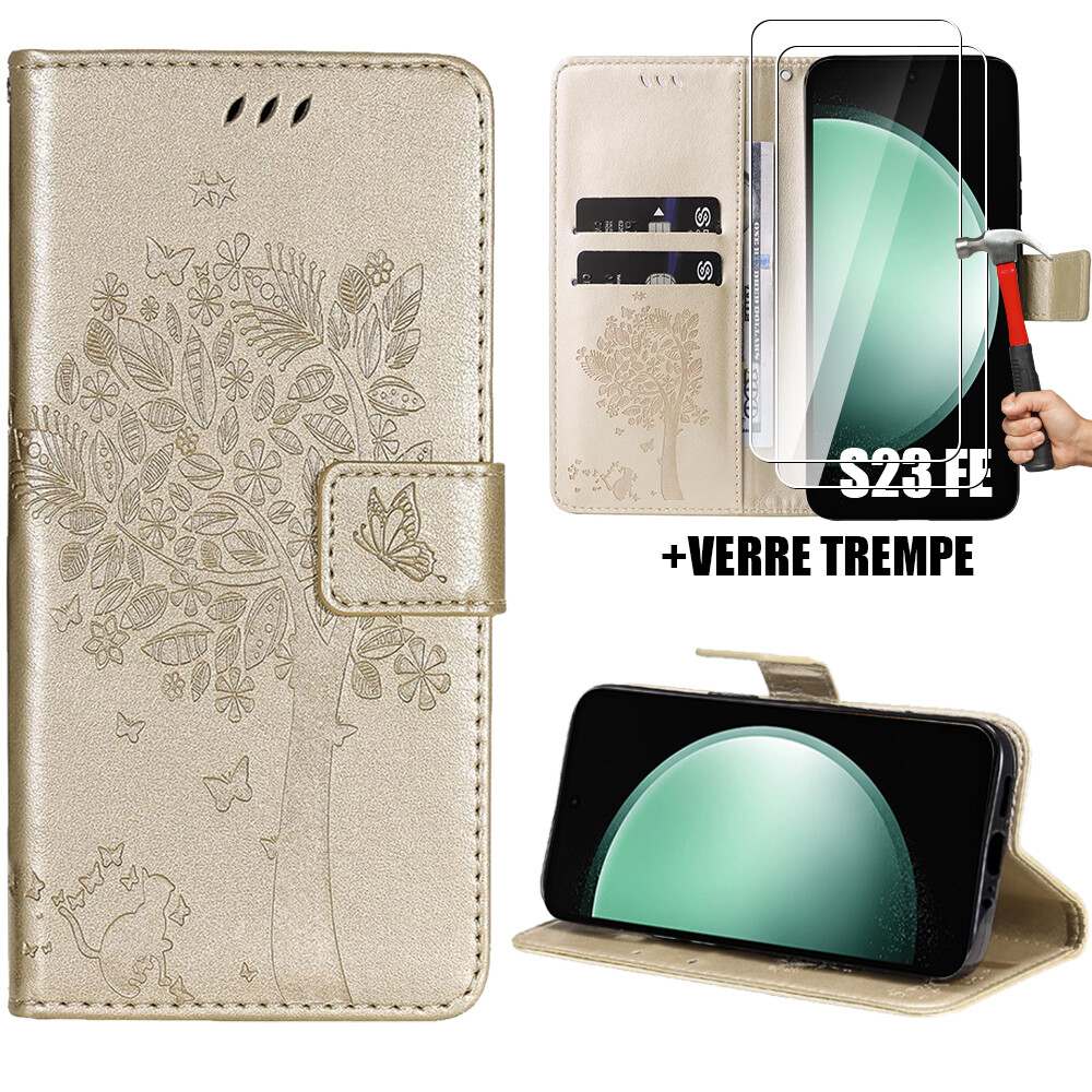 Coque +2 Verres Trempés pour Samsung Galaxy S23 FE S22 S21 FE S20 FE Motif Arbre