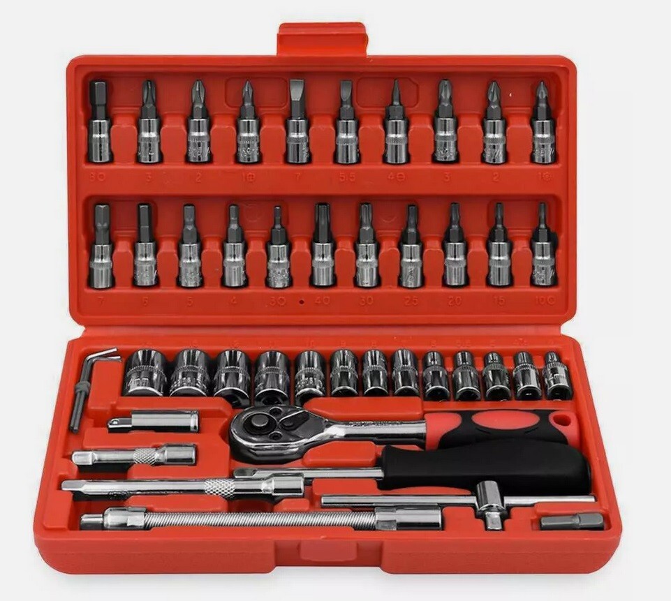 Mallette clés a cliquet coffret Outils douilles et embouts torx allen 1/4 46Pcs