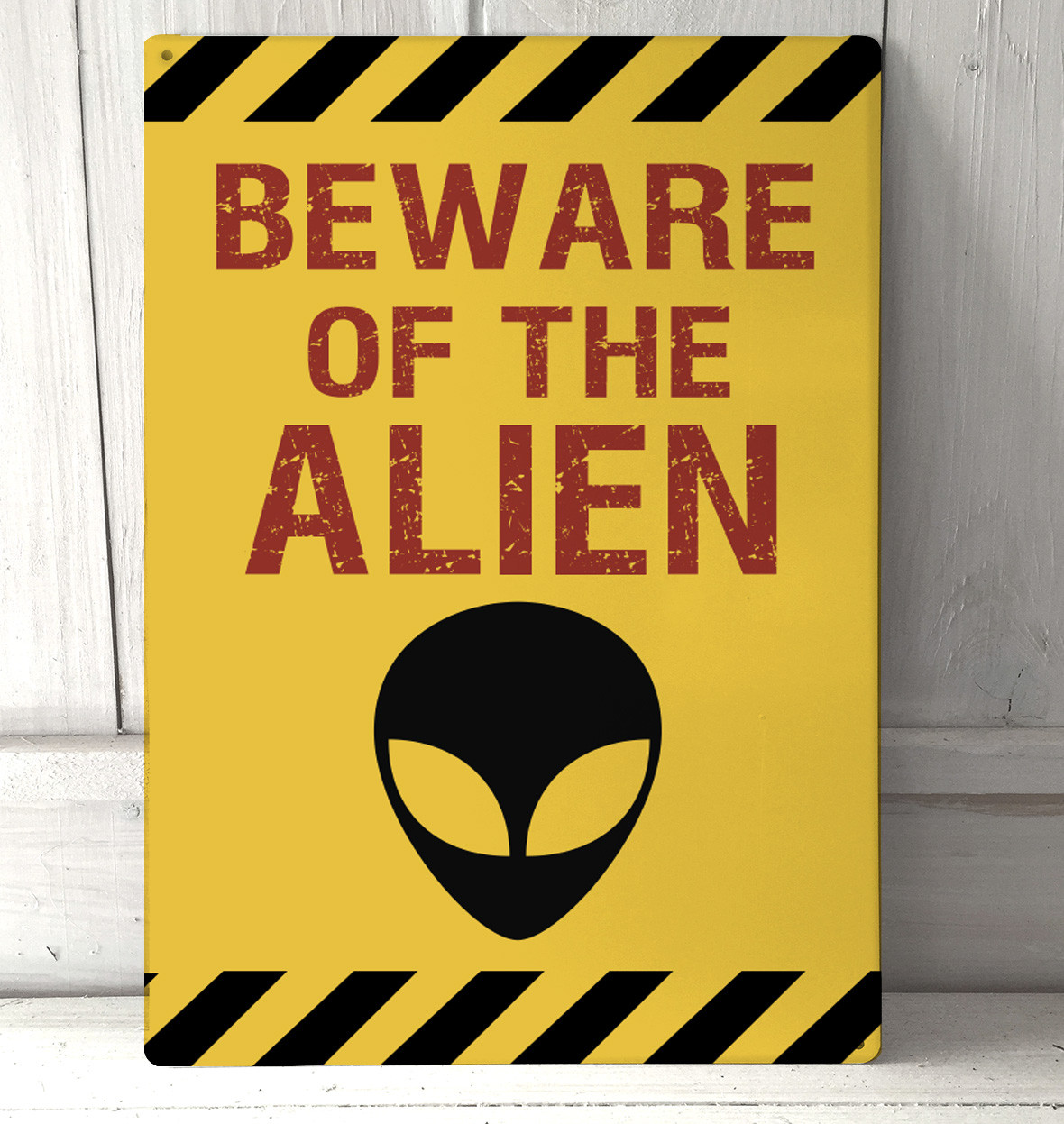 Méfiez-vous de l'Alien drôle Panneau d'avertissement Idée cadeau Plaque métallique A4 Plaque métallique en aluminium imprimée numériquement. Aurait fière allure dans n’importe quelle chambre, bar ou bureau pour une superbe décoration intérieure. • 30,5 cm x 20 cm (305 mm x 200 mm) • Prêt à accrocher, 4 trous • Impression numérique couleur.