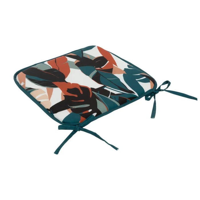 Galette de Chaise Imprimée "Feuilles" 38x38cm Bleu Canard
