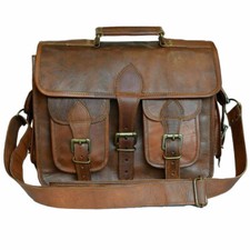 Sacoche à bandoulière pour ordinateur portable neuve en cuir véritable vintag...