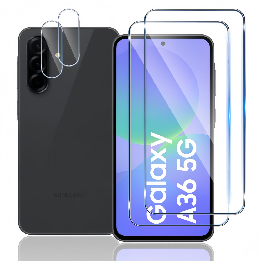 Protection D'écran + Protection Objectif Caméra Arrière en Verre Trempé Pour SAMSUNG GALAXY A36 5G. Matériau haute qualité : Verre trempé de 9H pour une durabilité et une résistance supérieures. Le film de protection caméra lentille recouvre la totalité de l'objectif de l'appareil photo, et peut être utilisée avec les étuis de téléphone portable.