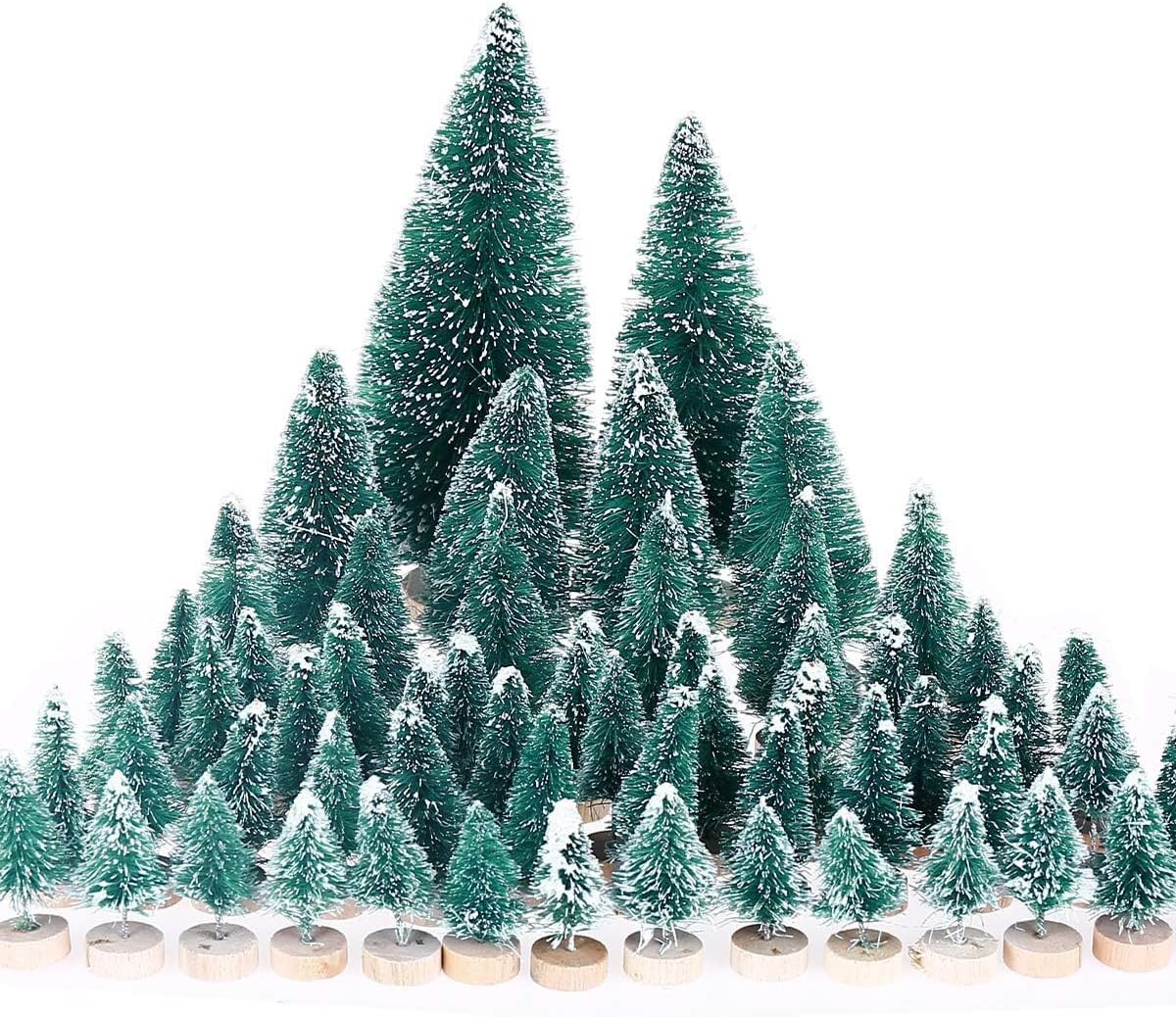 60 Pièces Mini Arbres de Noël Artificiels avec Effet Neige - Décoration de Table