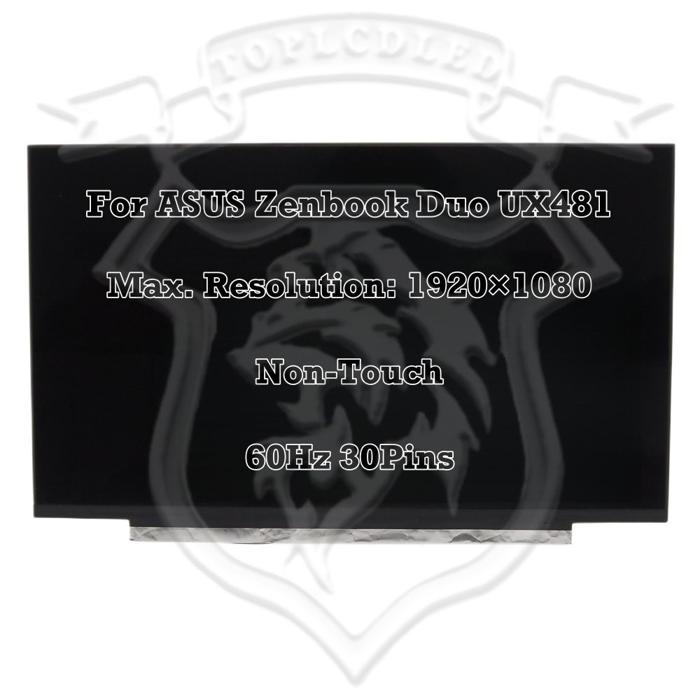 For ASUS Zenbook Duo UX481 14.0" FHD 1920×1080 LED LCD Assembly Replacement Screen Replacement Panel 60Hz EDP 30Pin VERY IMPORTANT! PLEASE READ BEFORE YOU BUY!!! • There are two versions of this product works on Max.Resolution 1920×1080 LED ! Please check your screen model before purchasing • Item Condition: Brand New • Size: 14" • Compatible Model: For ASUS Zenbook Duo UX481 • Resolution: 1920×1080 LED .
