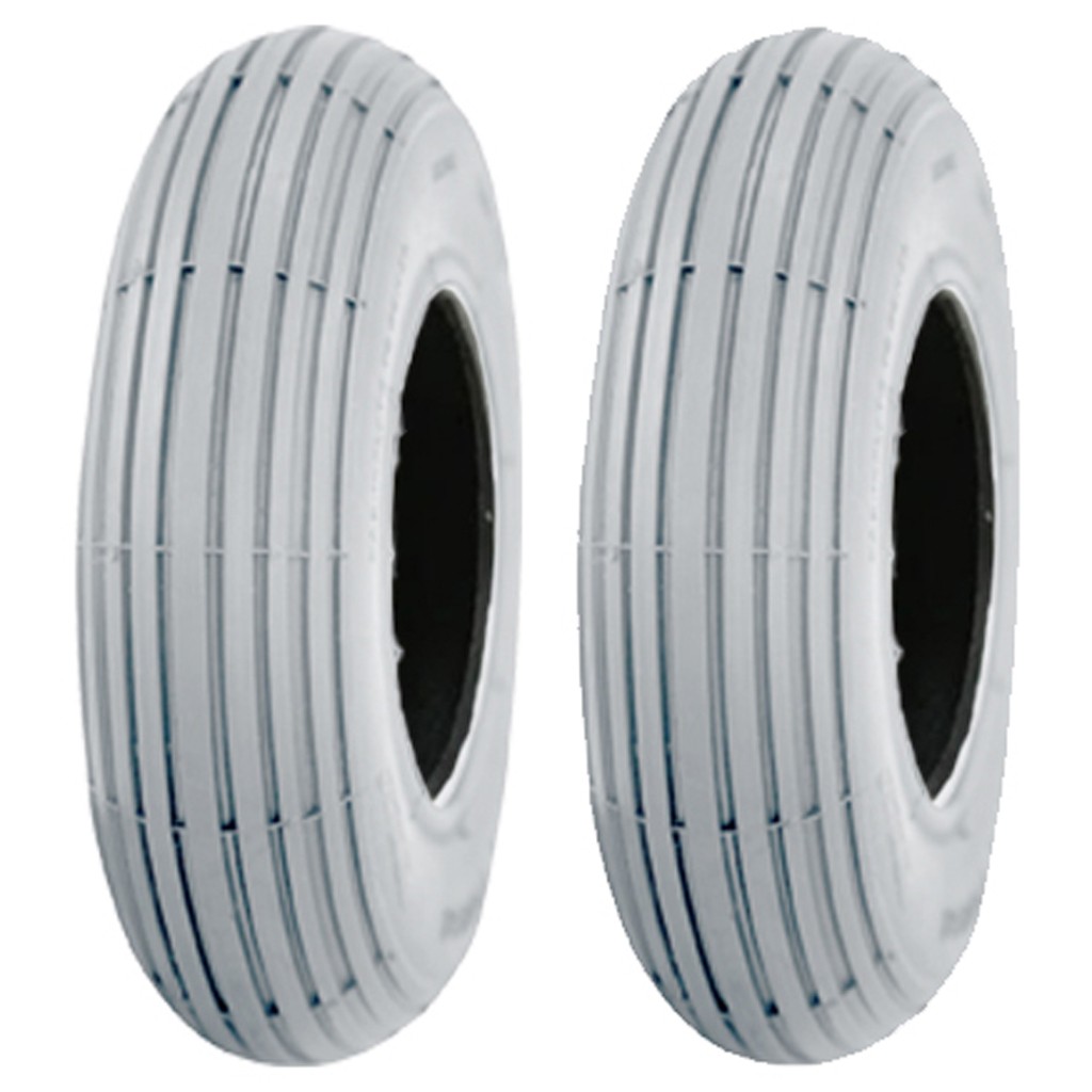 A vendre 2 pneus neufs Pneu pour scooter de mobilité, fauteuil roulant électrique Pneus 200x50mm 4ply P191-02 **Frais de port gratuits** Diamètre total : 200mm Largeur : 50mm Capacité de charge : 113 kg par roue à 36 PSI Il s'agit d'un caoutchouc gris non marquant d'excellente qualité avec un pneu nervuré lourd de 4 épaisseurs.